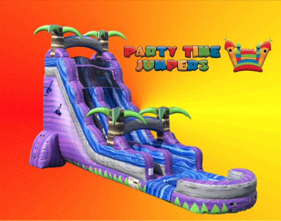 This 22' Purple Crush Water Slide is available for delivery in [insert delivery areas here]. Whether you're hosting a birthday party, a neighborhood get-together, or a school event, we'll bring the water slide straight to your location for an unforgettable day of sliding and splashing.